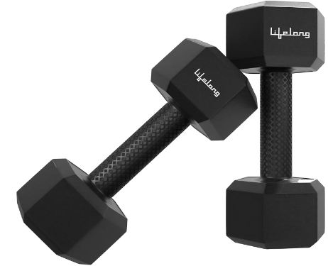 Lifelong PVC Hex Dumbbells 5kg x 2 (Black) – Home Gym Set with 6 Months Warranty