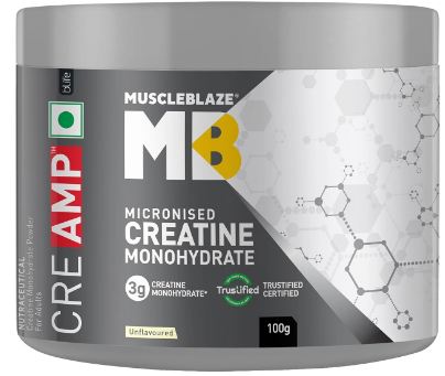 MuscleBlaze CreAMP Micronised Creatine Monohydrate – 100g (32 Servings), Unflavoured | Trustified Certified